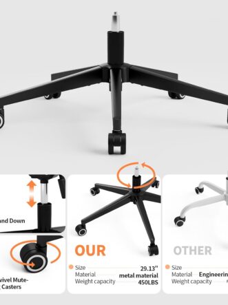 Tugevad rauast jalad, vaiksed rattad, SGS-sertifitseeritud gaasitõstuk ja 360° pöörlev alus tagavad suurepärase stabiilsuse. Kandevõime kuni 136 kg. Tooli kallet saab reguleerida vahemikus 90°–130° ning 2D käetoed on üles klapitavad 90°, et säästa ruumi.